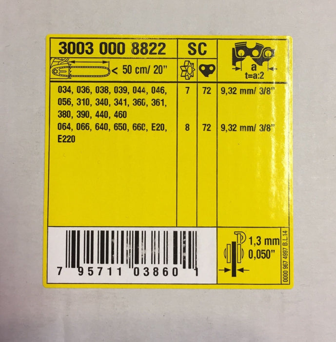 Stihl OEM 3003-000-8822 Rollomatic ES 20" Chainsaw Guide Bar